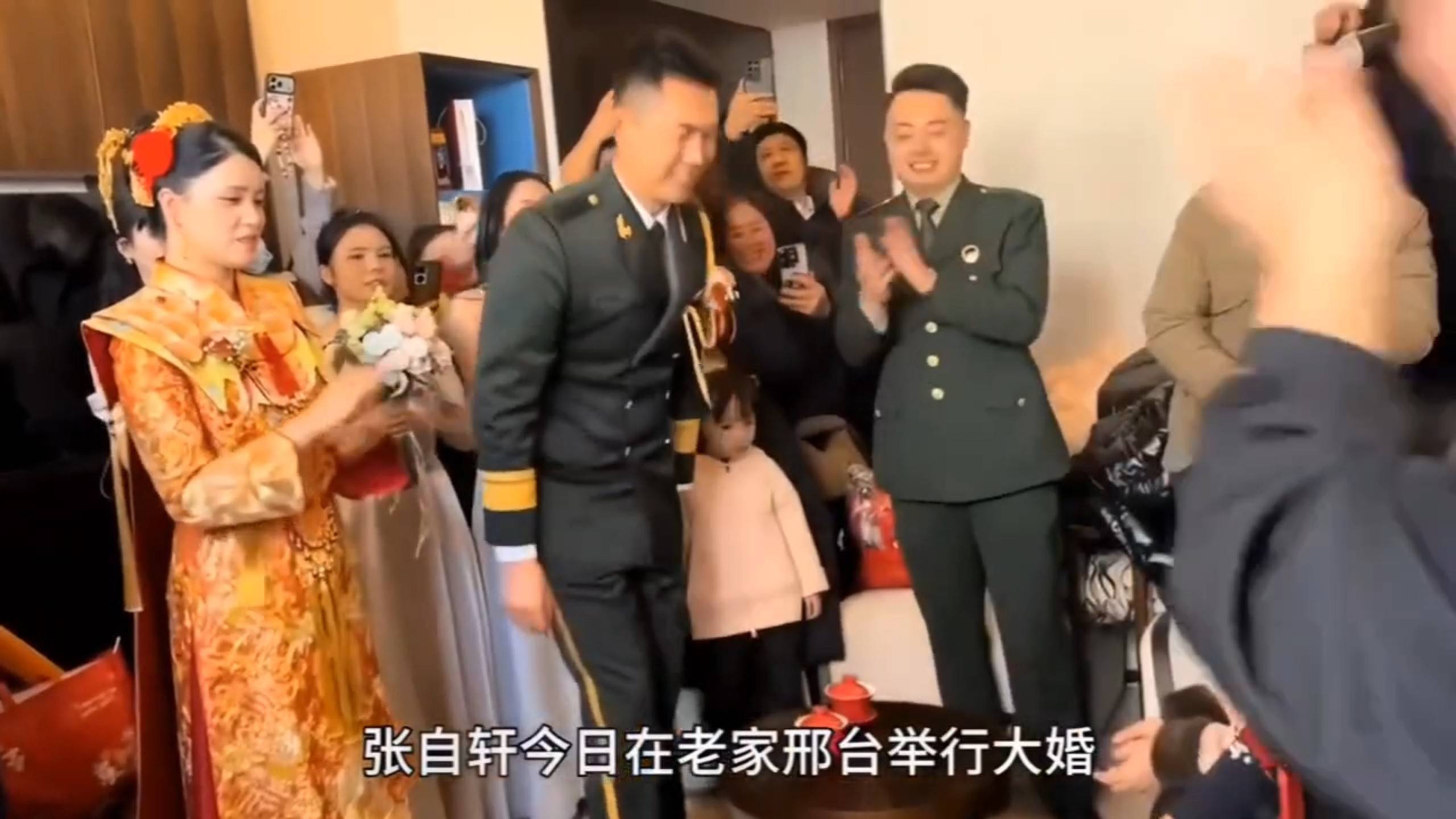 婚礼当天最戳人的一幕,是张自轩重新穿上军装的瞬间。当《歌唱祖国》的旋律响起,他下意识挺直腰背,左手习惯性向斜上方抬起——那是护旗手特有的擎旗姿势。新娘笑着帮他整理衣领:“都退役三年了,还改不了这毛病。”网友却在弹幕里刷屏:“刻进骨子里的习惯啊!”这场流水席上,没有豪车鲜花,只有乡亲们送来的棉被和鸡蛋,以及直播间万次点赞。有人问他后悔脱下军装吗?张自轩指着墙上的国旗照片说:“护旗是守护国家的尊严,助农是守护乡亲的日子,都一样重。” 如今的张自轩,依然每天清点起床跑步,被子叠成豆腐块摆在炕上。他说自己还是那个河北农村的普通小伙,只是多了两个身份:曾是护旗手,永远是农民的儿子。这场让全网泪目的婚礼,或许正是对“偶像”二字最好的注解——真正的光芒,从来不是聚光灯下的华丽,而是把勋章藏进抽屉,在平凡生活里继续发光的模样。